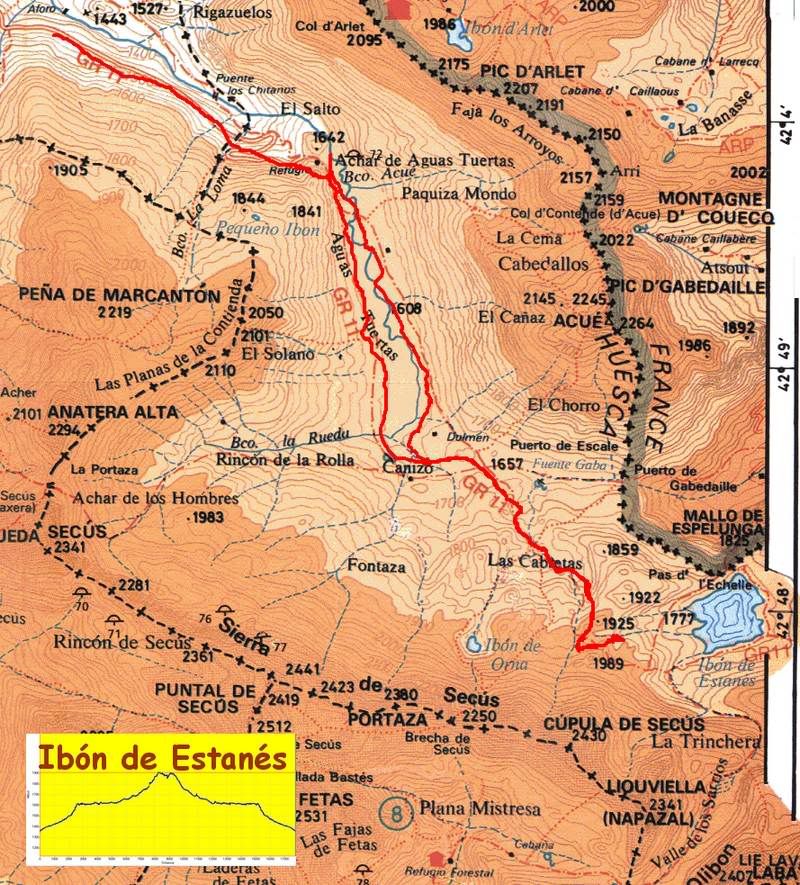 El arroyo serpentea formando unos meandros caprichosos y tras recorrer el valle nos hace llegar al Ibón de Estanés